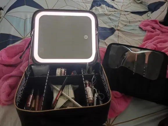 WOW!! This MakeUp case is a lifesaver!!! 🌟 Ever since I got it, my makeup routine has transformed. Whether I'm in a dim cafe or a friend's bathroom, I always have perfect lighting now!! It fits all my must-haves like my foundation, mascara, and gloss. The PU leather is a slick touch that saves it from my many spills LOL. To anyone always on the move, this is IT xD Cheers to more flawless looks now wherever I am.